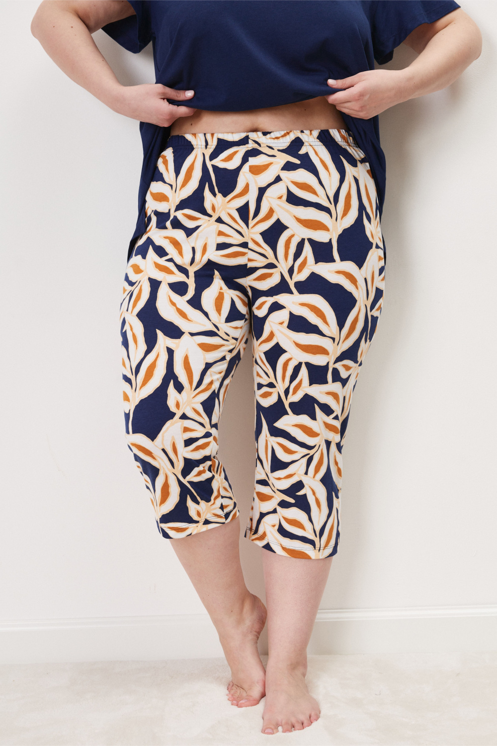 Бриджи свободного прилегания на мягком поясе Plus Size (больших размеров). Комфортная посадка и длина не сковывают движений. Укороченные брюки уместны для любых домашних активностей. В боковых швах функциональные карманы.
