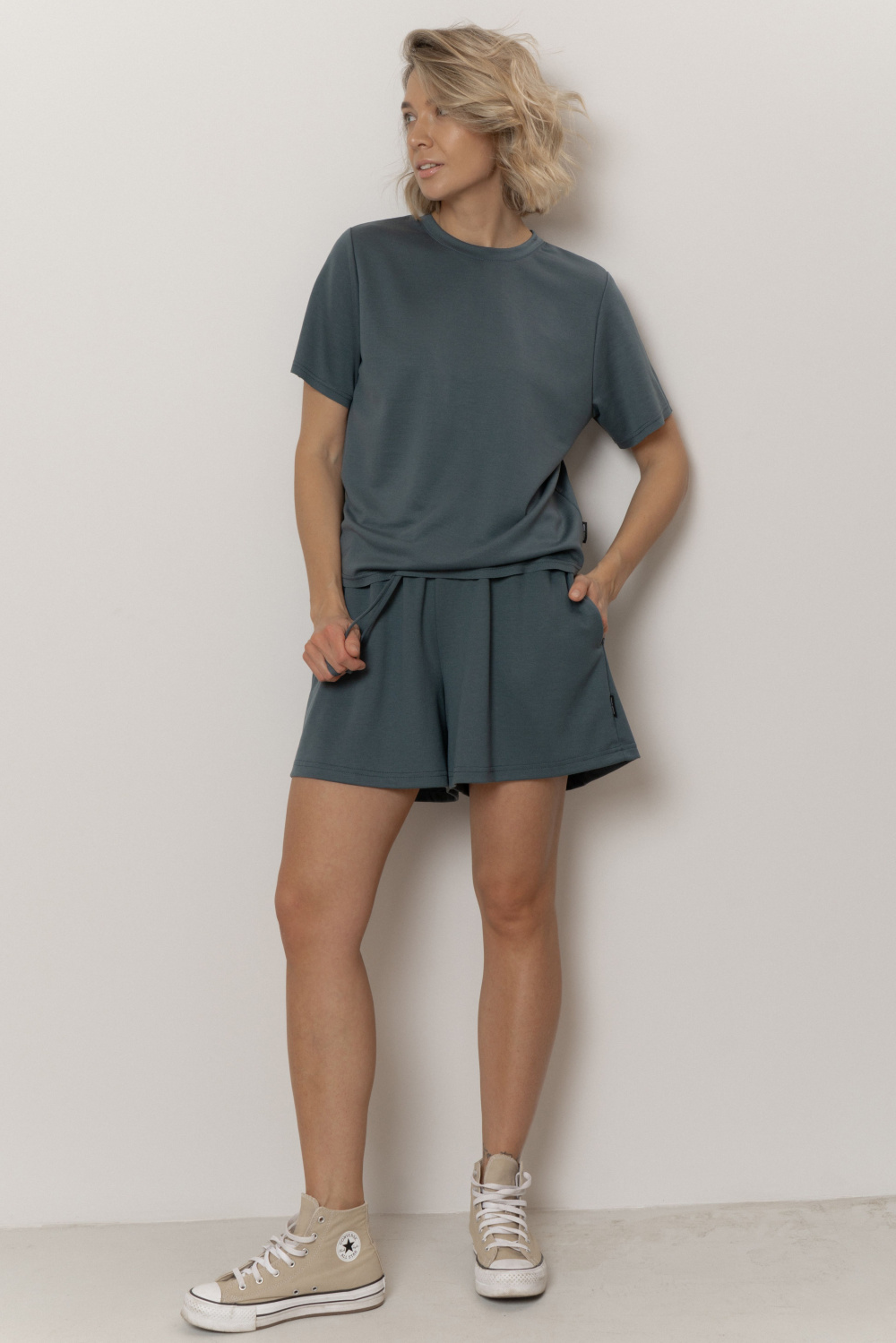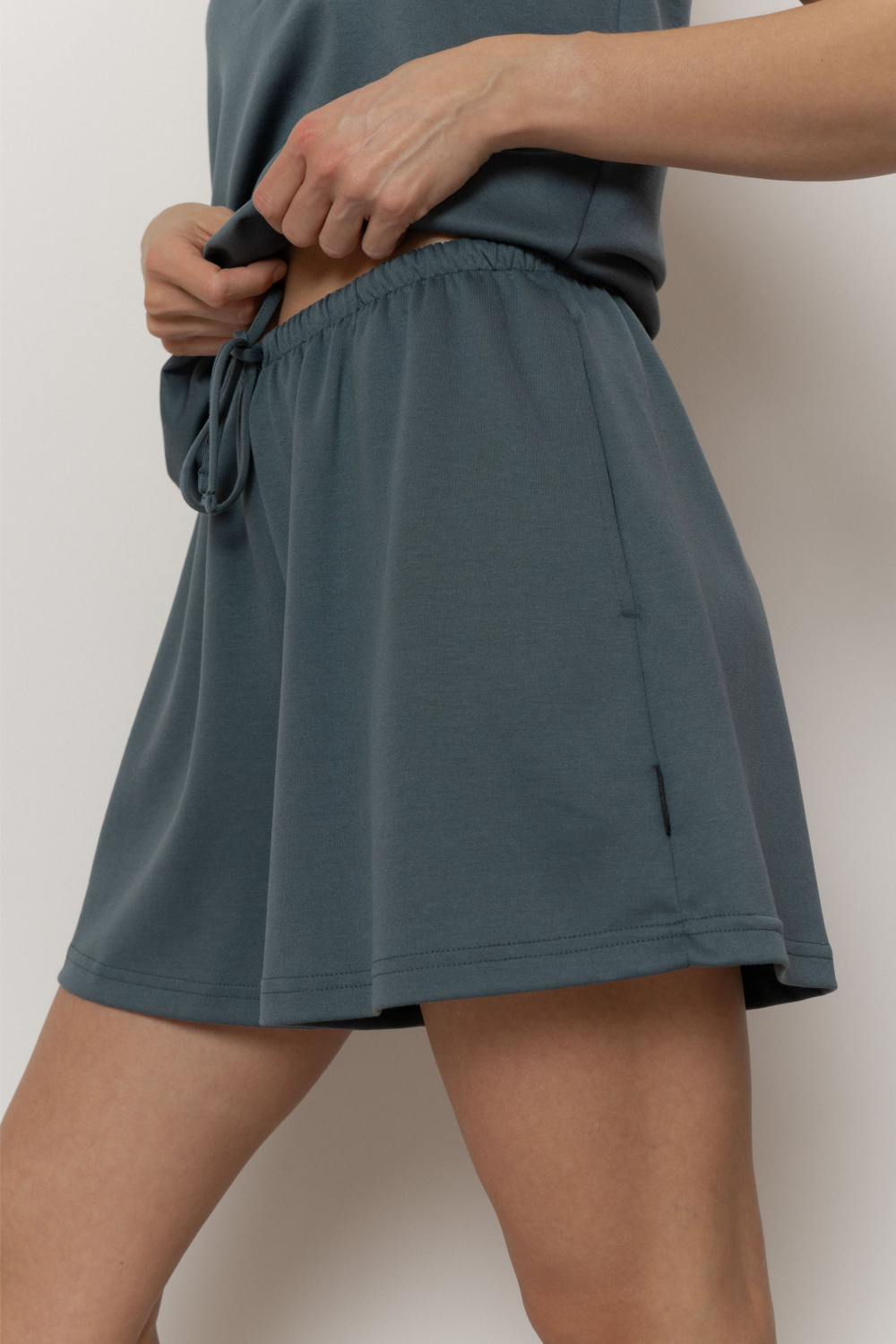 Шорты свободного прилегания с мягким поясом на резинке с кулисой. Практичная и универсальная модель идеально сочетается с топом и футболкой коллекции, создавая лёгкие, уютные и гармоничные образы для дома и отдыха. Подходит для занятий легким фитнесом, утренних пробежек и отдыха вне дома.