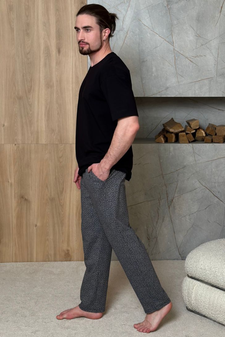 Удобные брюки на широком эластичном поясе со шнуром - отличный вариант для домашнего и активного отдыха. Слегка зауженные к низу брюки с боковыми карманами имеют удобную посадку по фигуре и дарят свободу движениям.