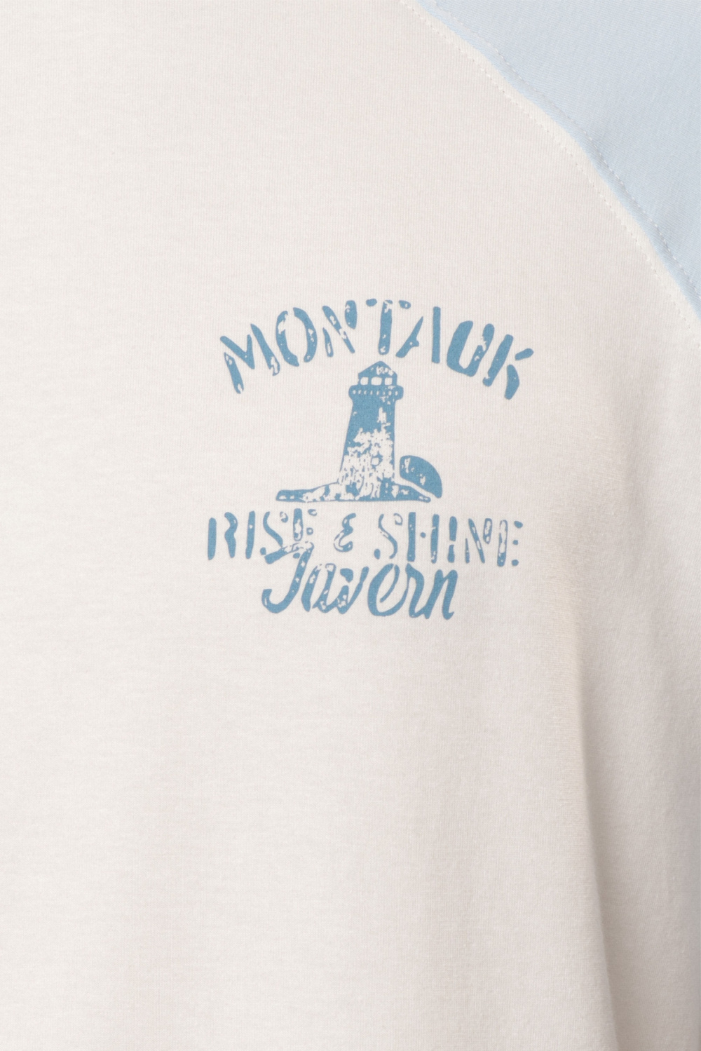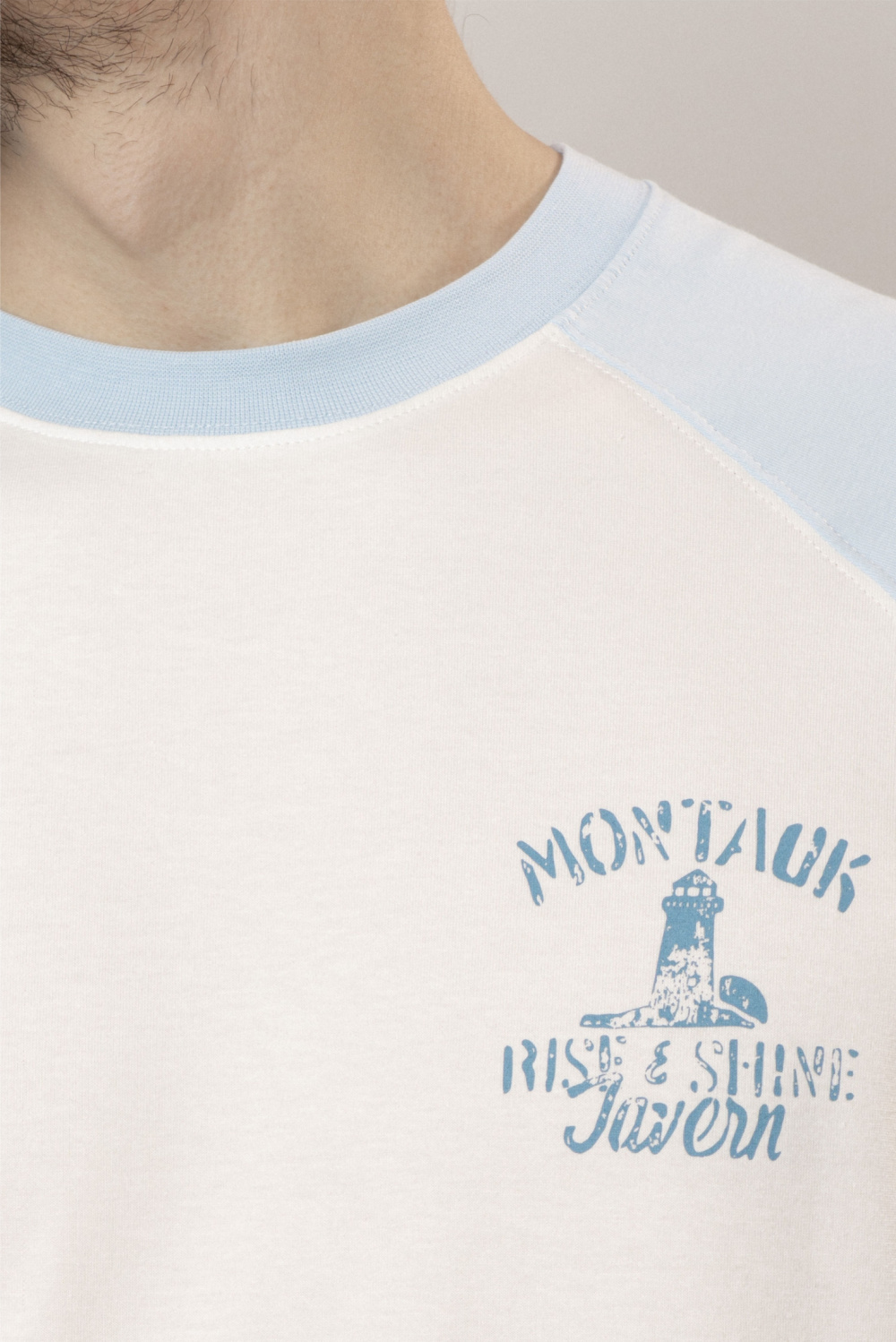 Футболка прямого силуэта с круглым вырезом и втачным акцентным рукавом, декорированным тематическим принтом. Плотная кулирная гладь из натурального хлопка с добавлением эластана