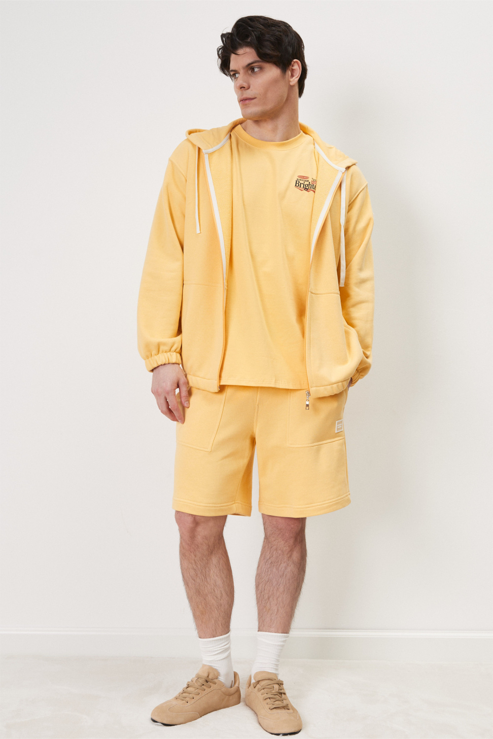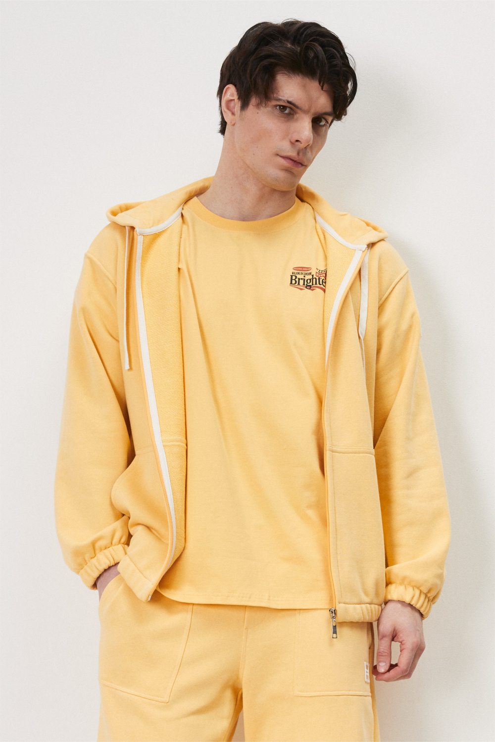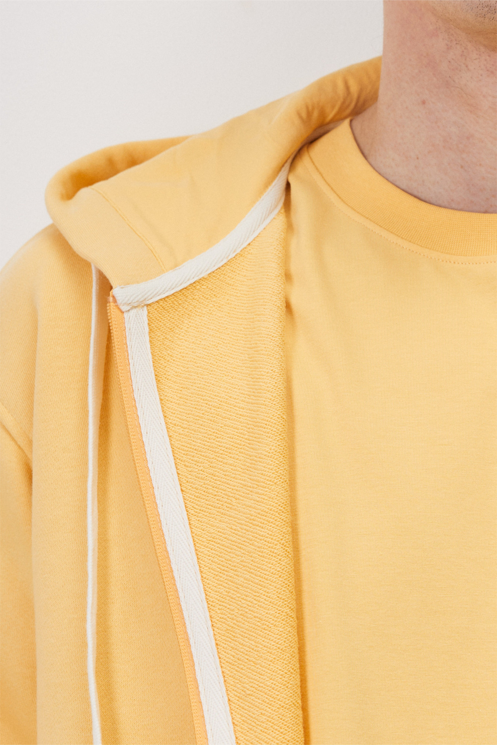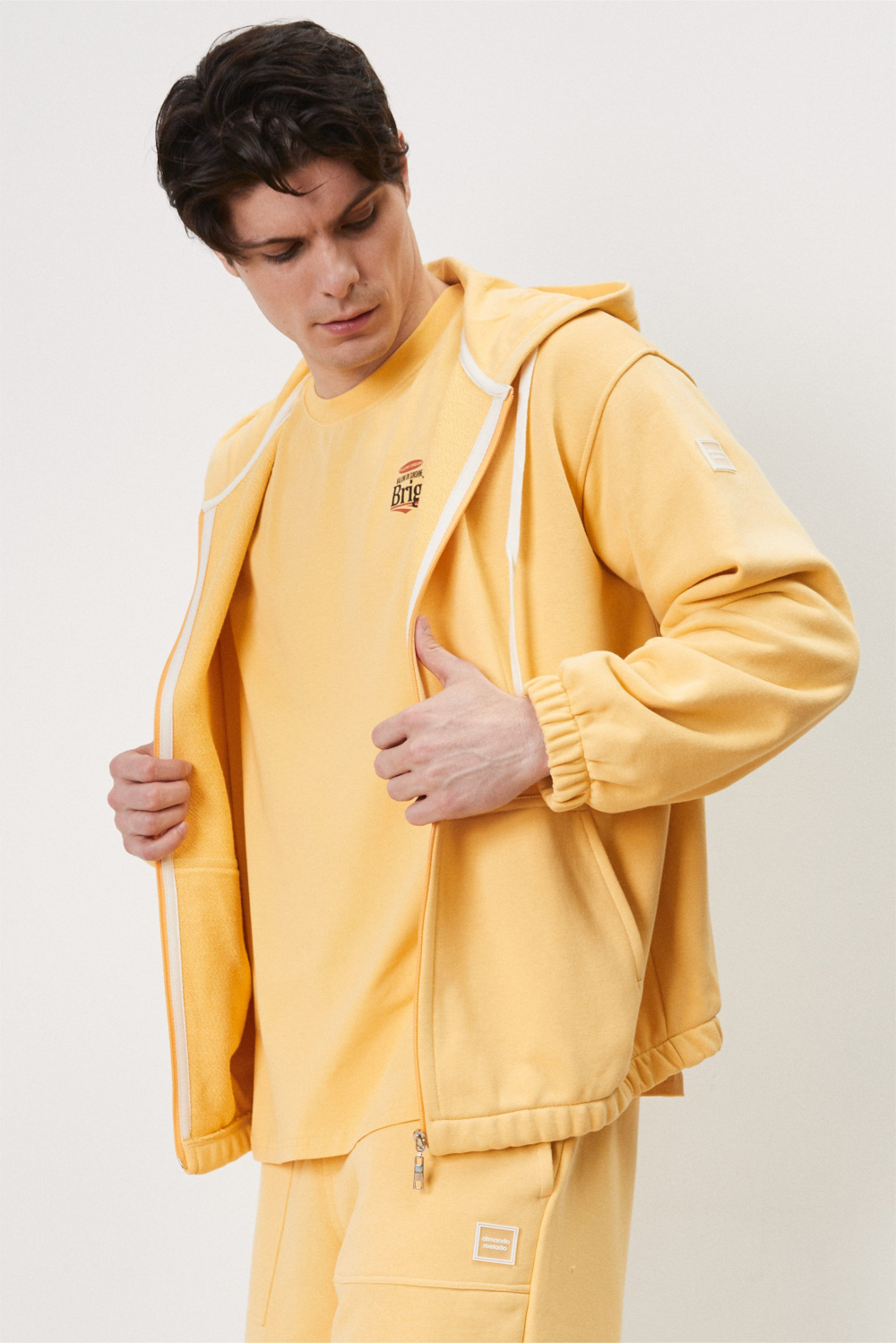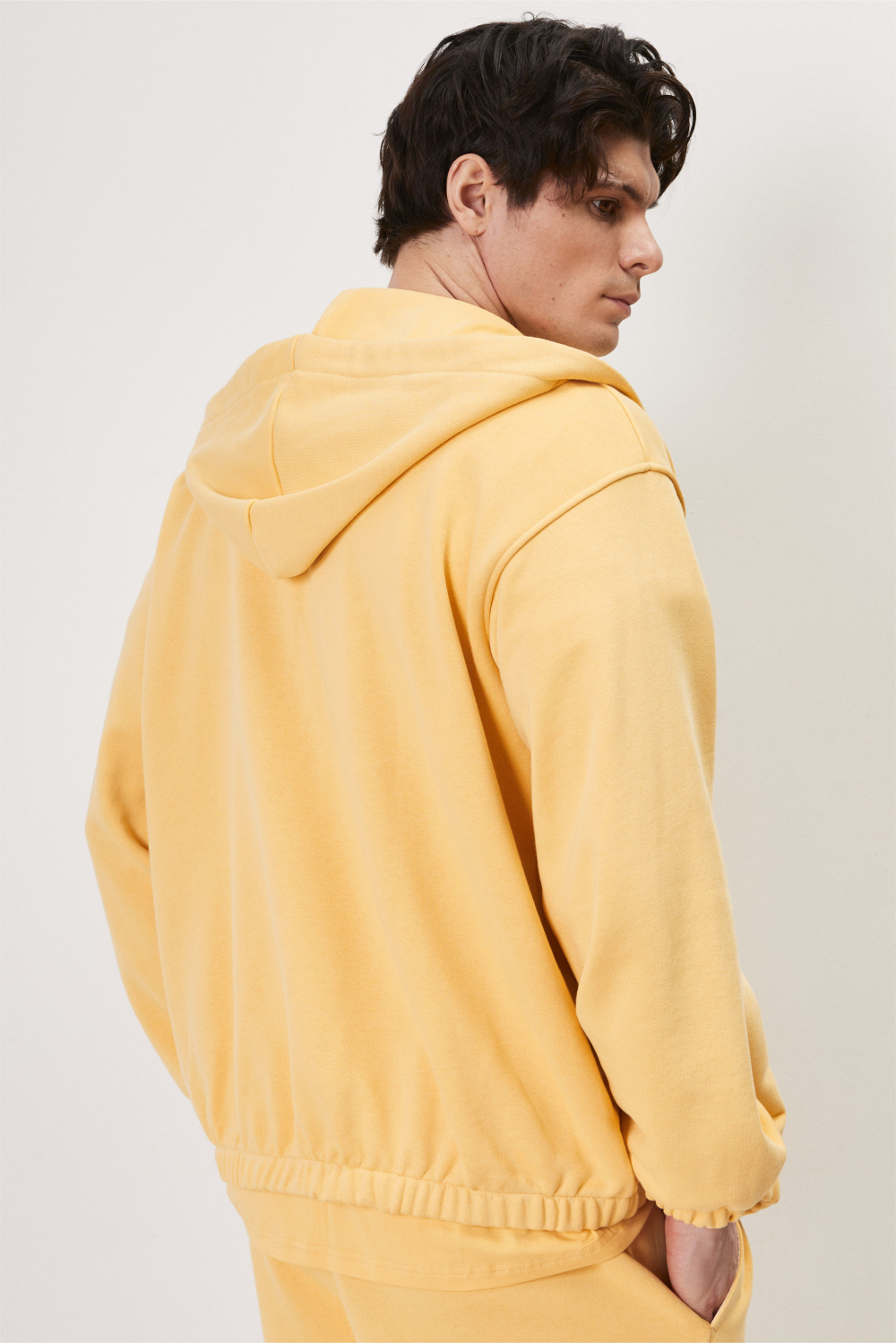 Куртка из футера с застежкой на молнию и капюшоном. Резинка по низу куртки и рукавов обеспечивают комфортное прилегание, защищая от ветра и сохраняя тепло. Практичная и стильная модель для создания многослойных образов.