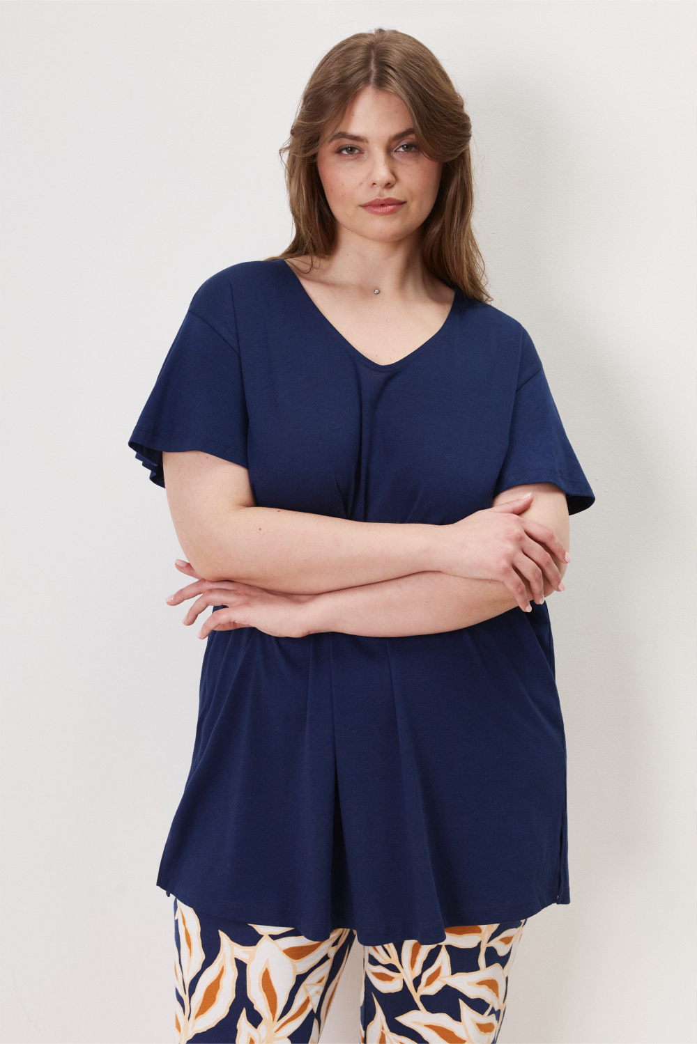 Свободная туника с V-образным вырезом горловины Plus Size (больших размеров). Рукава-«крылышки» придают тунике игривый, романтичный образ.
