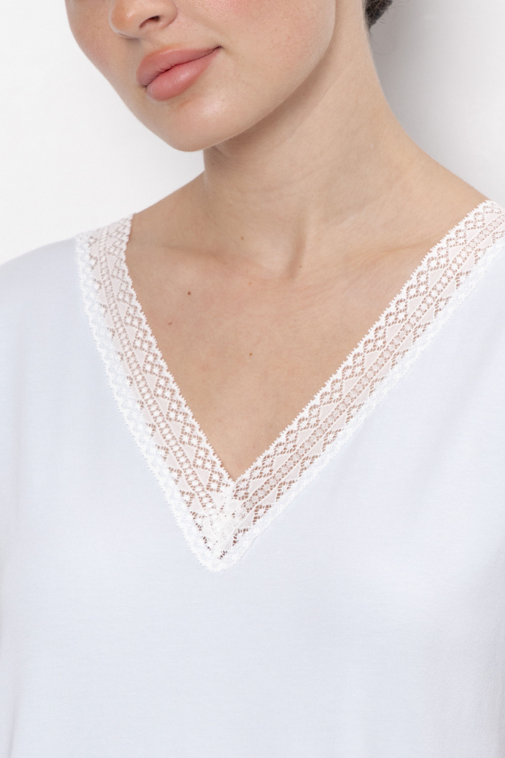 Романтичная сорочка свободного прилегания с V-образным вырезом горловины и спущенным плечом.