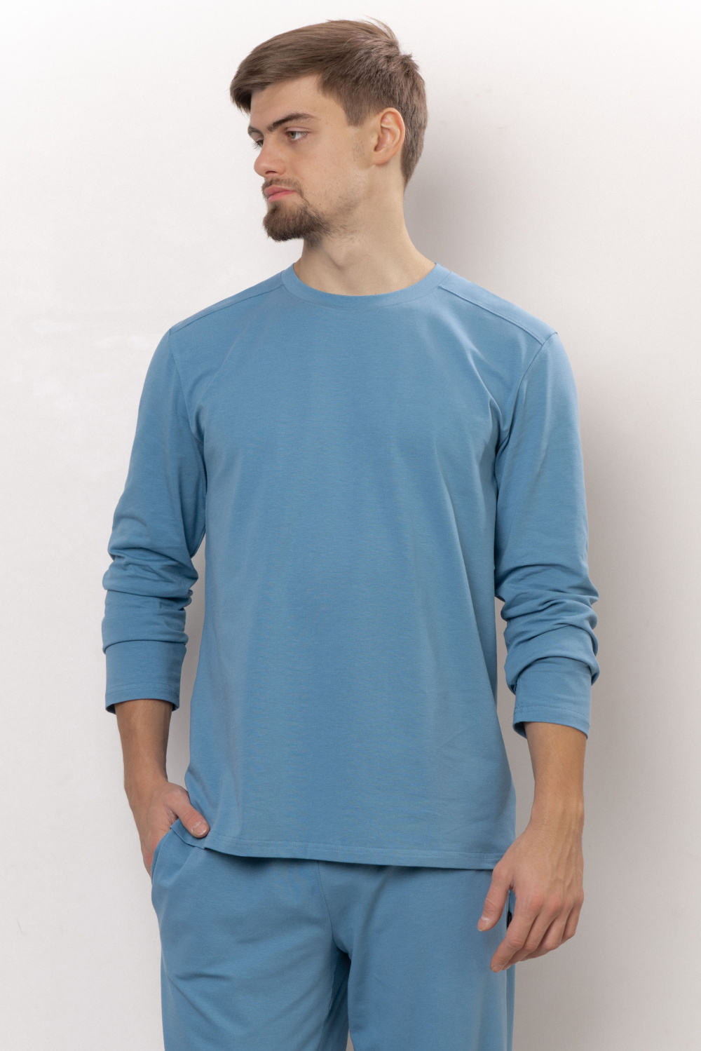 Лонгслив классический с длинным рукавом. Вырез горловины круглый. Удобный, стильный и доступный вариант для комфортной домашней атмосферы. Прекрасно миксуется с поясными изделиями данной коллекции.