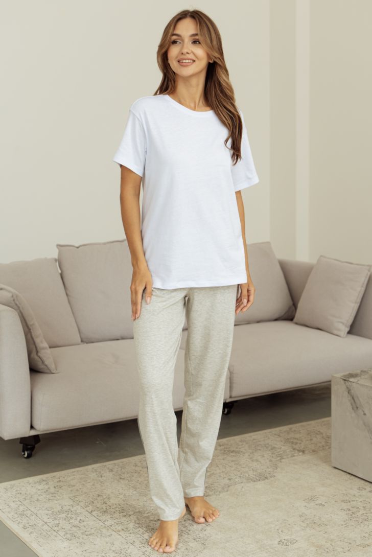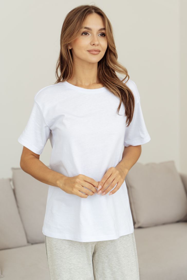 Футболка свободного прилегания с круглым вырезом горловины и коротким классическим рукавом. Удачно комбинируется с брюками и шортами данной коллекции, а так же с любыми поясными изделиями из личного гардероба. Идеально сочетается с жакетами и кардиганами.