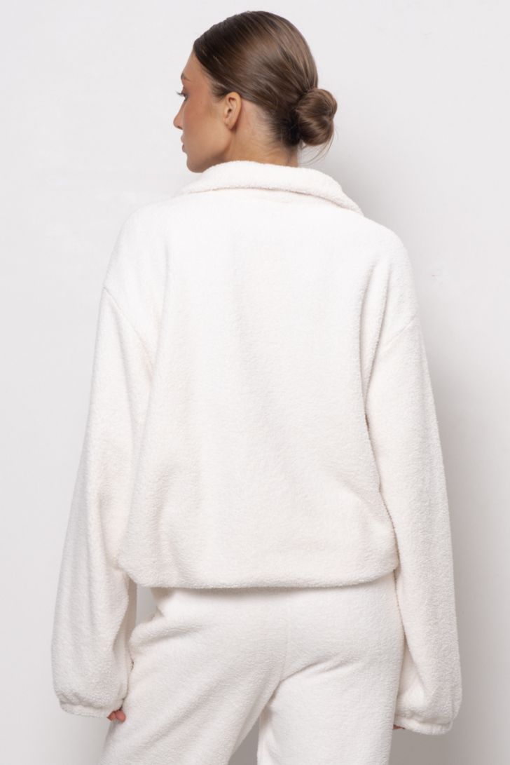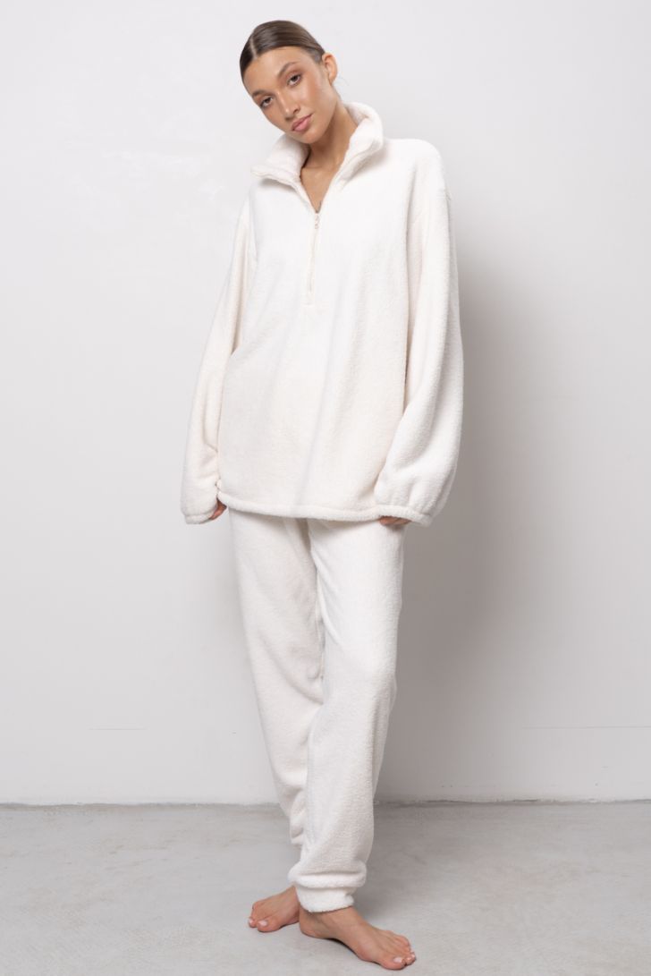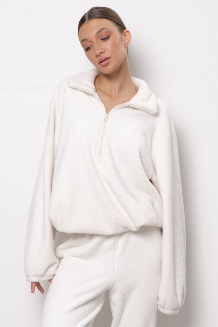 Джемпер свободного кроя с длинными рукавами и воротником-стойкой на молнии из тактильно приятной плюшевой ткани Wellsoft. Модель мягкая и лёгкая, отлично сохраняет тепло и не стесняет движений. Низ изделия можно регулировать с помощью