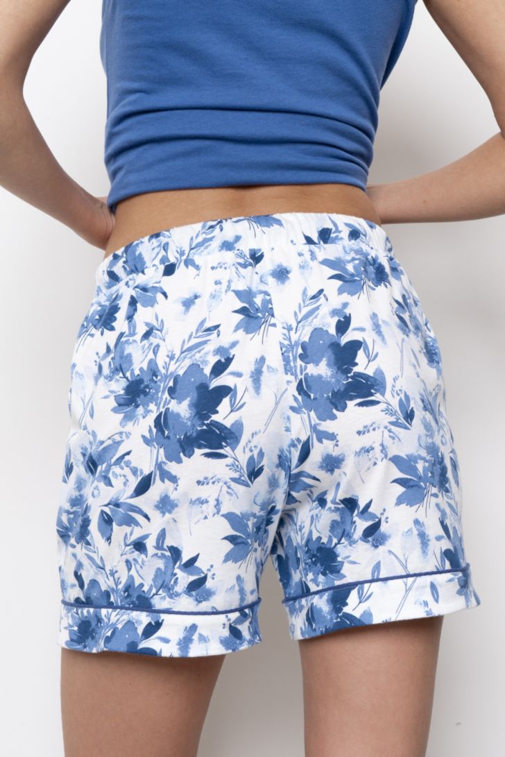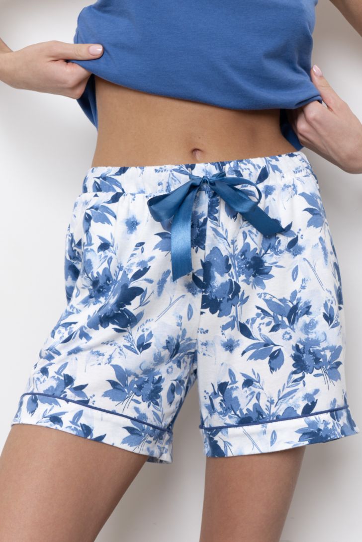 Пижама женская состоит из топа и шорт свободного прилегания.