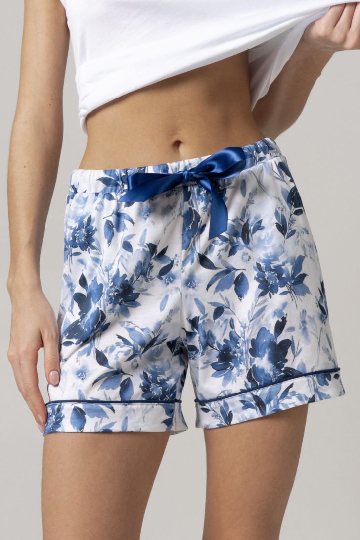 Пижама женская состоит из топа и шорт свободного прилегания.