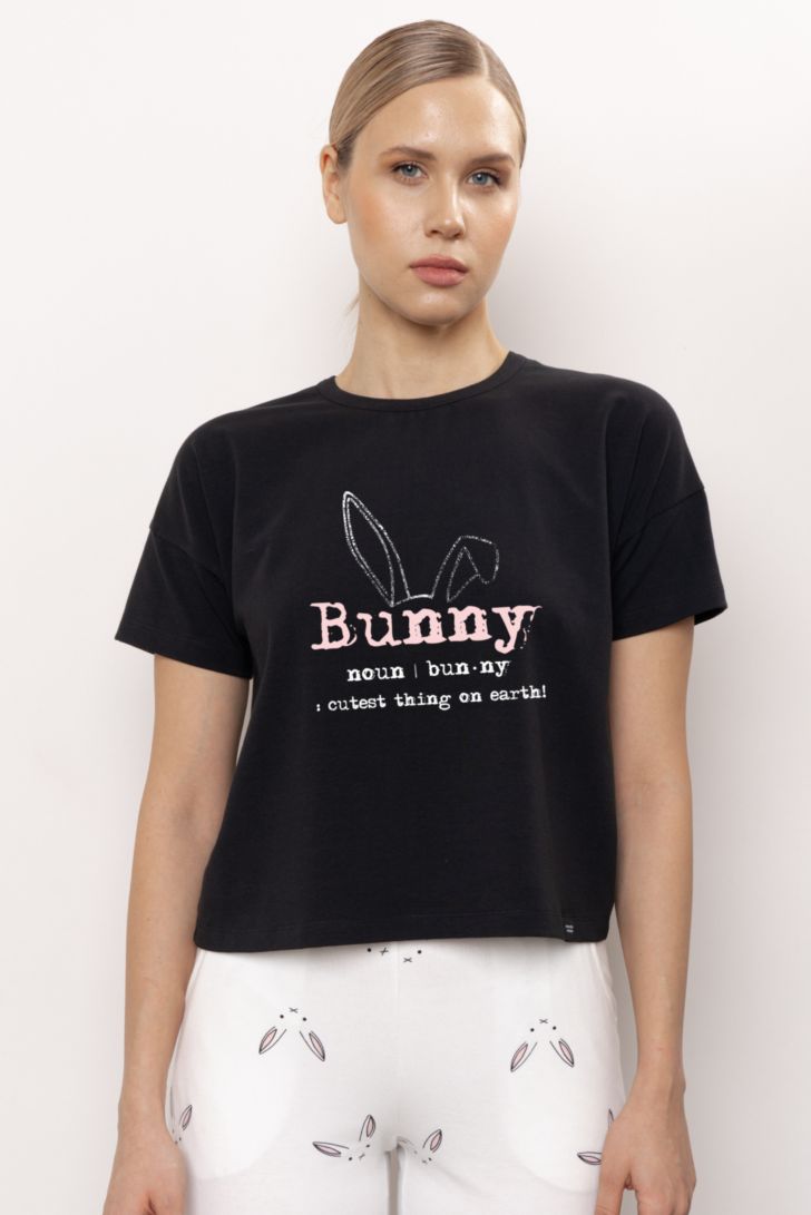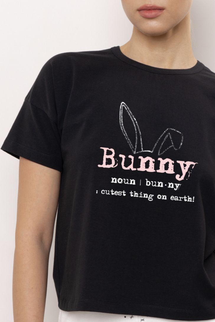 Укороченная футболка свободного прилегания со спущенной линией плеча. Вырез горловины круглый.