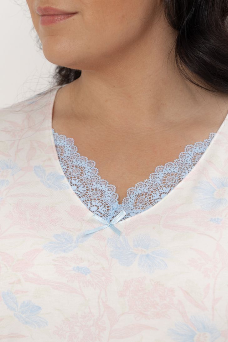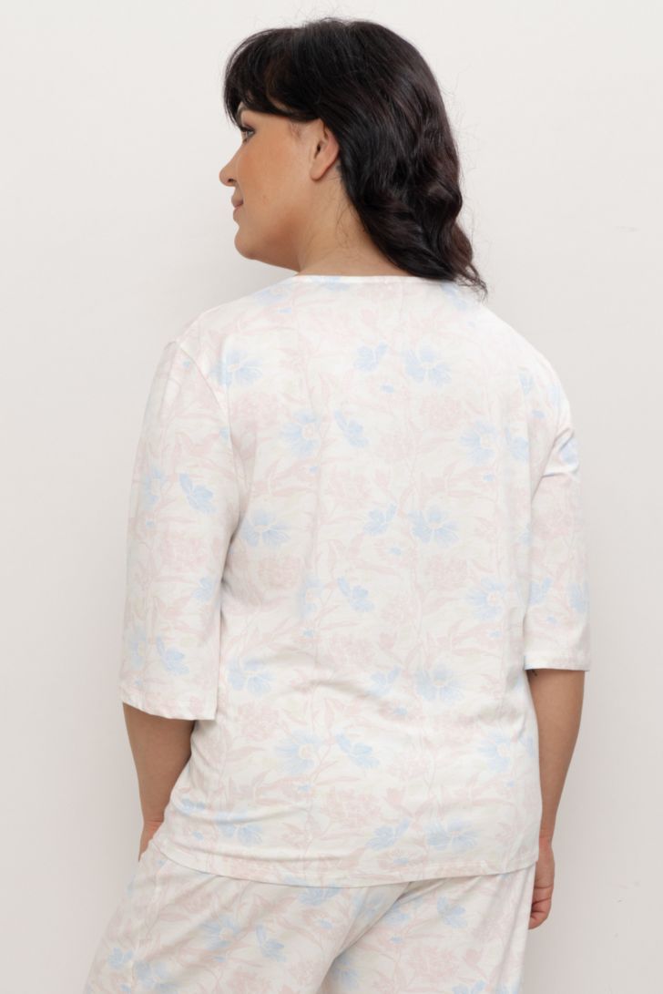 Струящаяся пижама из нежного модала состоит из джемпера со спущенным рукавом 3/4, и свободных брюк.