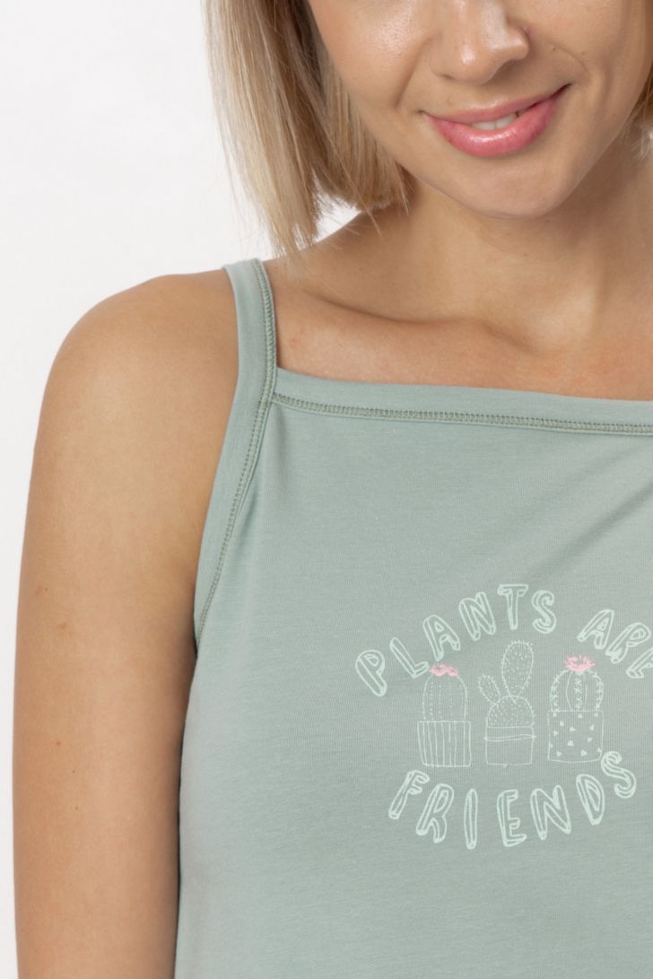 Идеальна для утреннего кофе, отдыха с книгой или спокойного вечера в кругу близких. Сорочка на тонких бретелях с квадратным