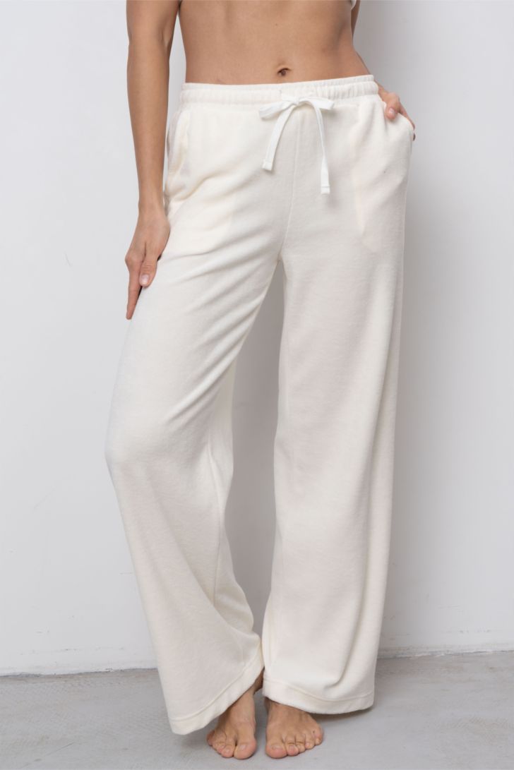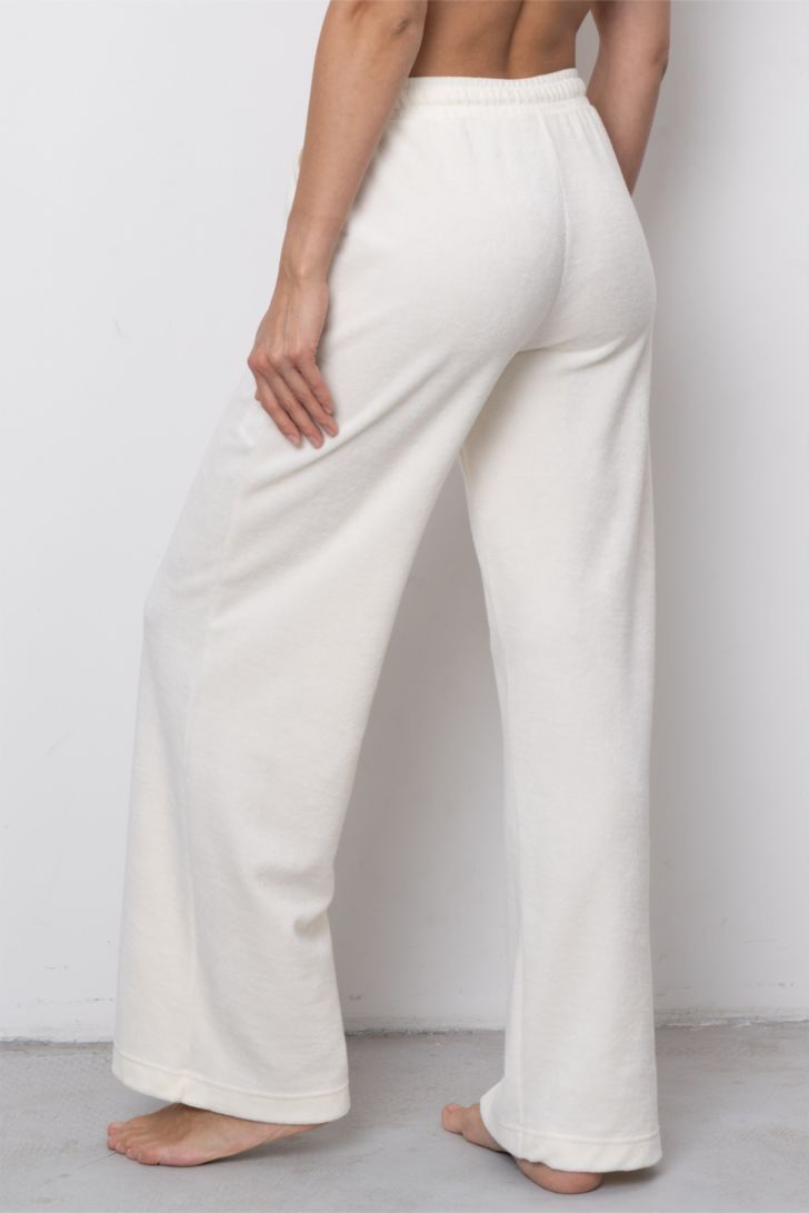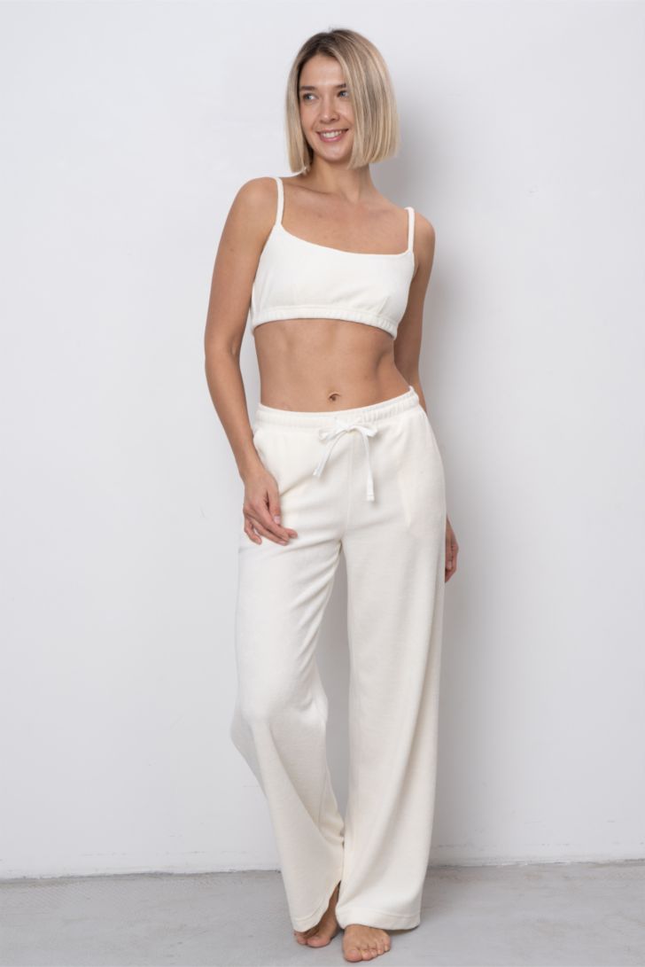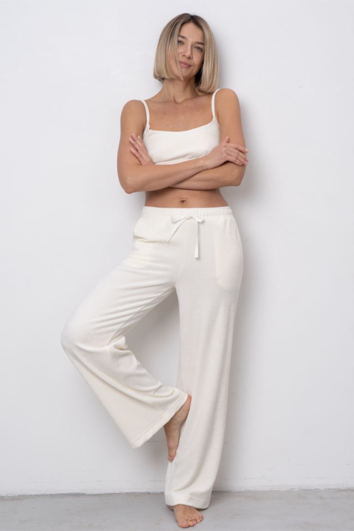 Брюки палаццо из мягкой махровой ткани на резинке. Эти брюки — верный спутник в мире комфорта и релаксации. Благодаря свободному крою Вам свободно и легко, никаких ограничений и дискомфорта — только свобода и легкость каждого шага.