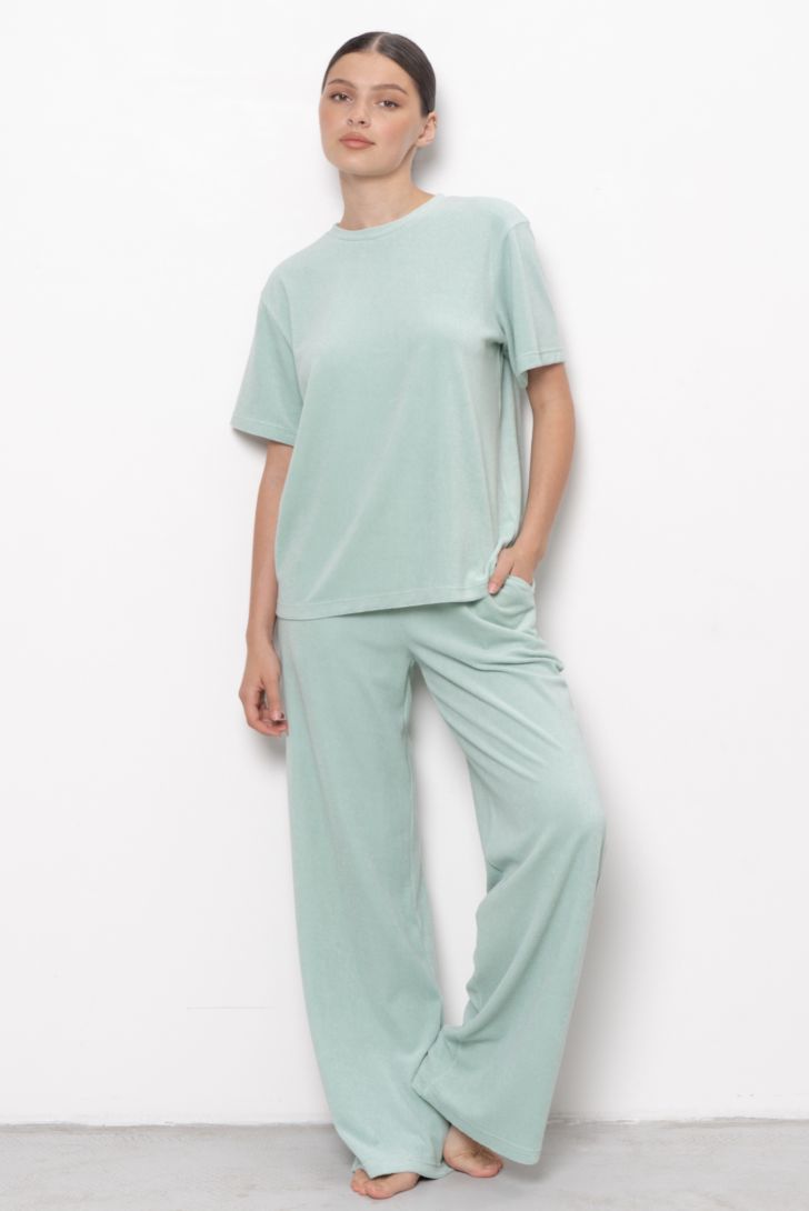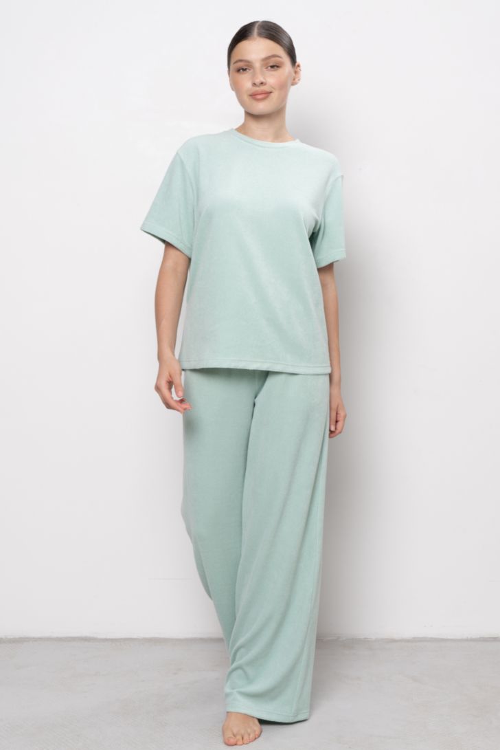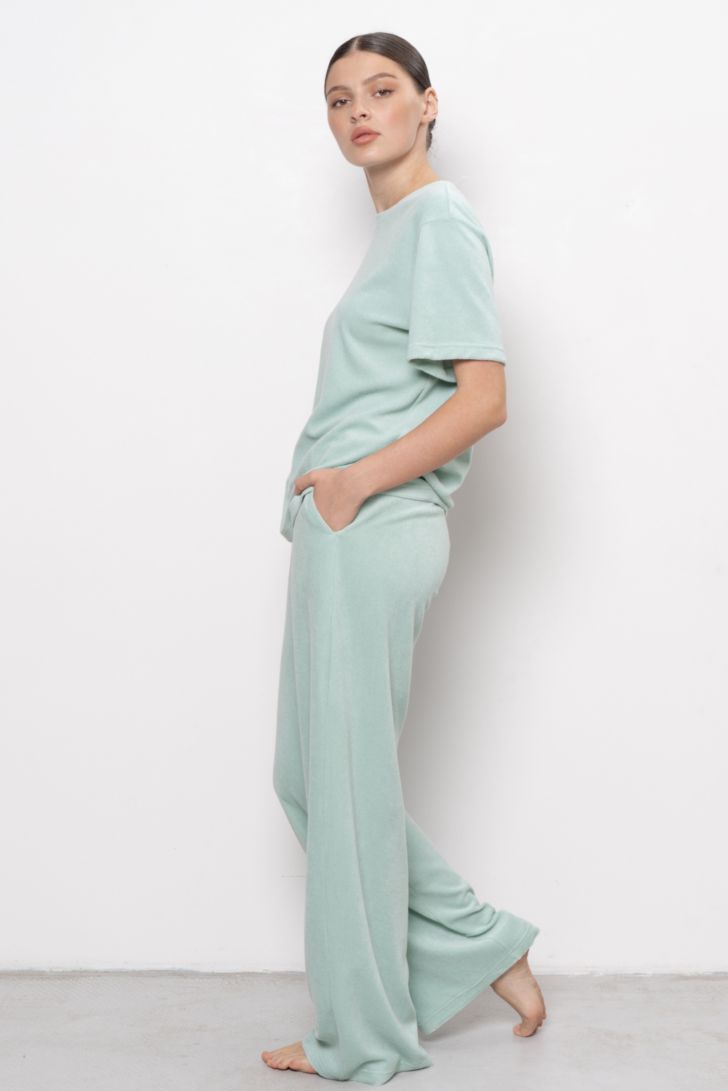 Брюки палаццо из мягкой махровой ткани на резинке. Эти брюки — верный спутник в мире комфорта и релаксации. Благодаря свободному крою Вам свободно и легко, никаких ограничений и дискомфорта — только свобода и легкость каждого шага.