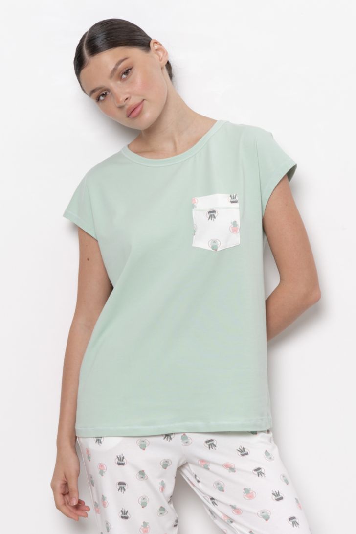 Домашний комплект для женщин, созданный специально для тех моментов, когда комфорт становится главным. Этот комплект состоит из футболки и свободных, к низу зауженных брюк, выполненных из