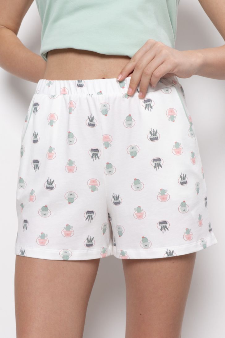 тематическим принтом. Шорты укороченные на мягком поясе.