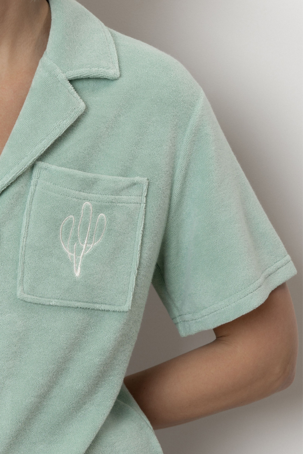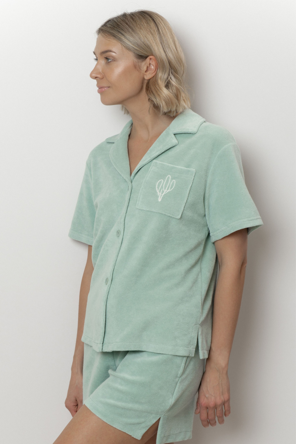 Эта блуза из нежного махрового полотна – как тёплое объятие после долгого дня. Воздушная, но плотная ткань приятна к телу, дарит ощущение комфорта и заботы. Крой – свободный и продуманный до мелочей: не сковывает движений, но и не болтается бесформенно. Аккуратный воротник, короткий рукав делают её идеальной для домашних посиделок, утреннего кофе или отдыха под пледом.