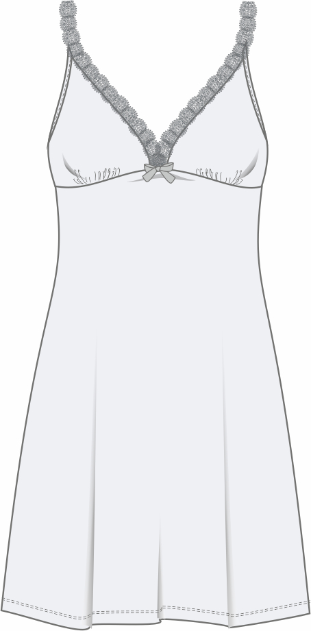 Её свободный крой не сковывает движения. Глубокий V-образный вырез декорирован нежным кружевом, плавно перетекающим в бретели.