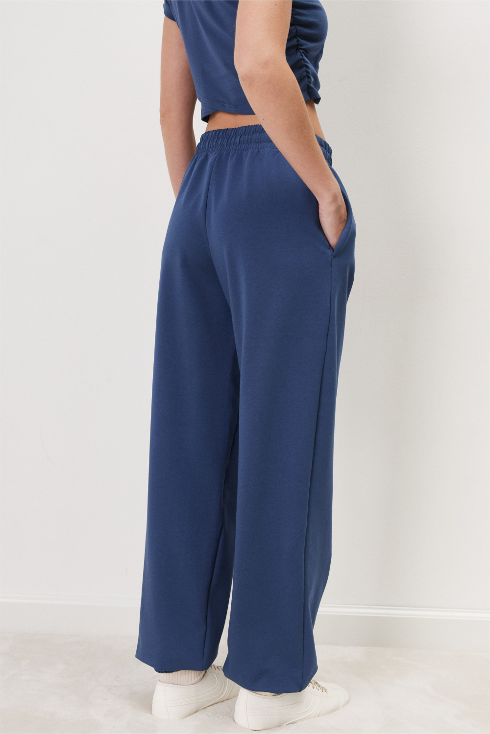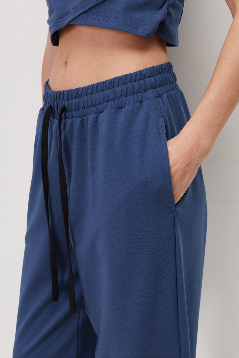 Брюки прямого силуэта на мягком эластичном поясе на резинке и регулировочным шнуром. Низ на резинке.