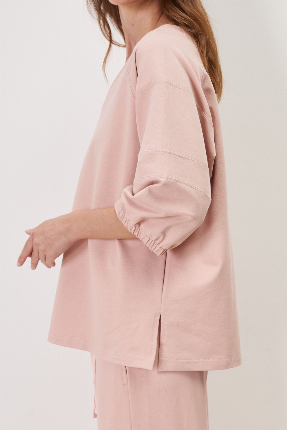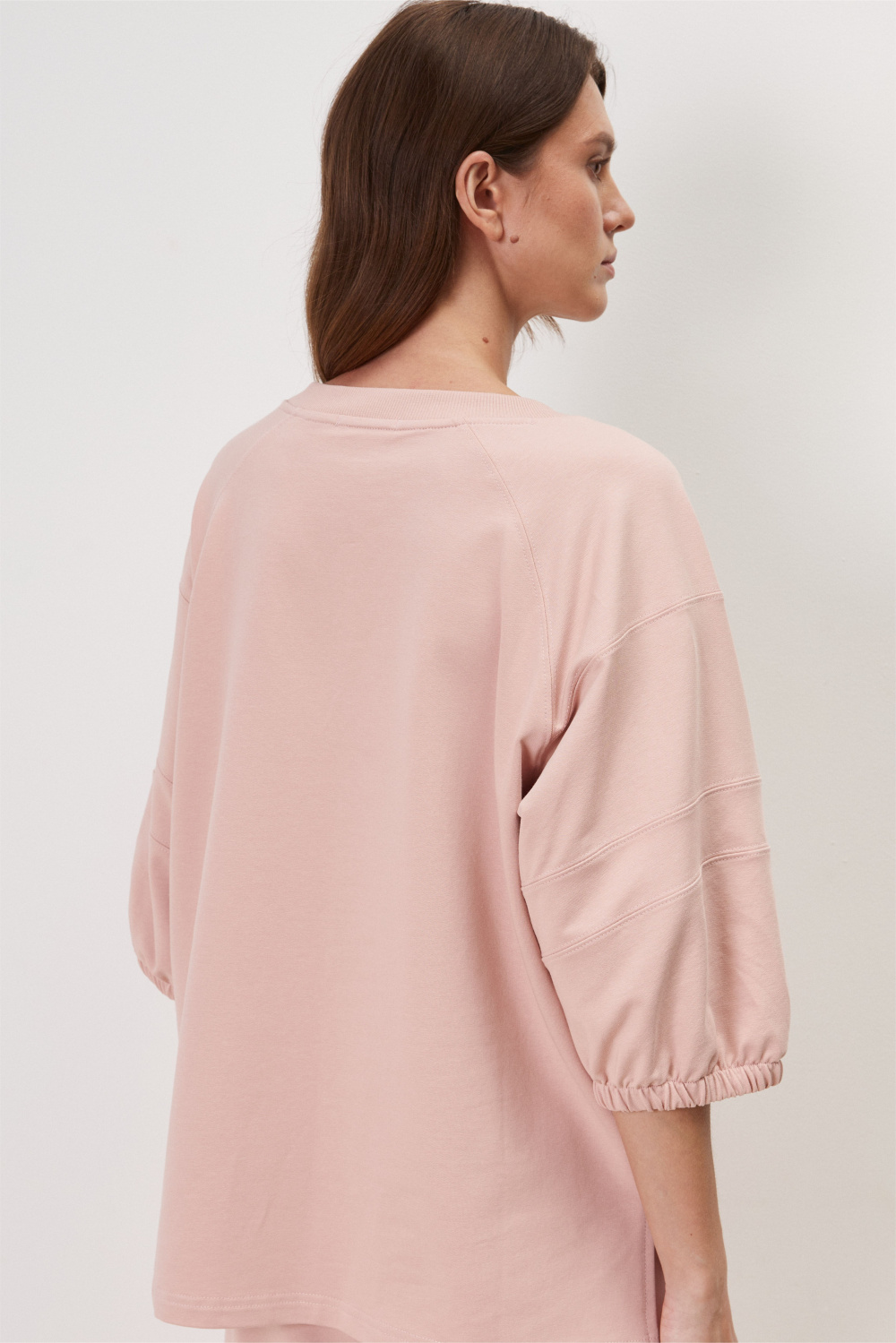 Рукава длиной в три четверти, объемно собраны у манжет, что создаёт романтичный образ.