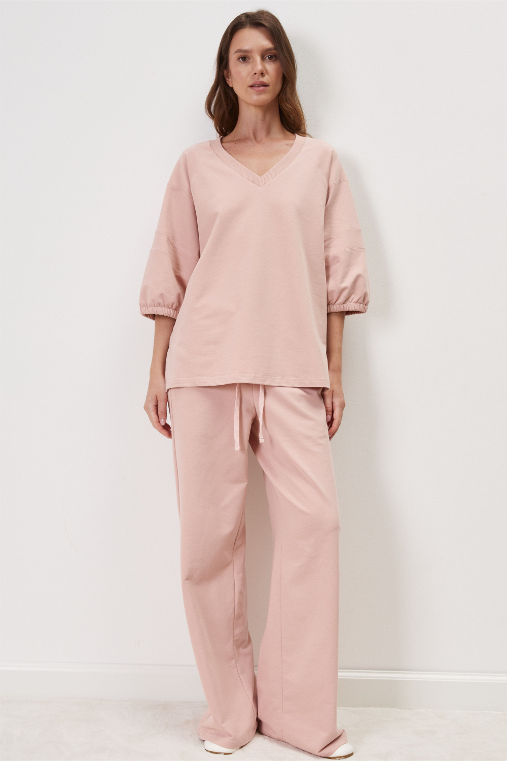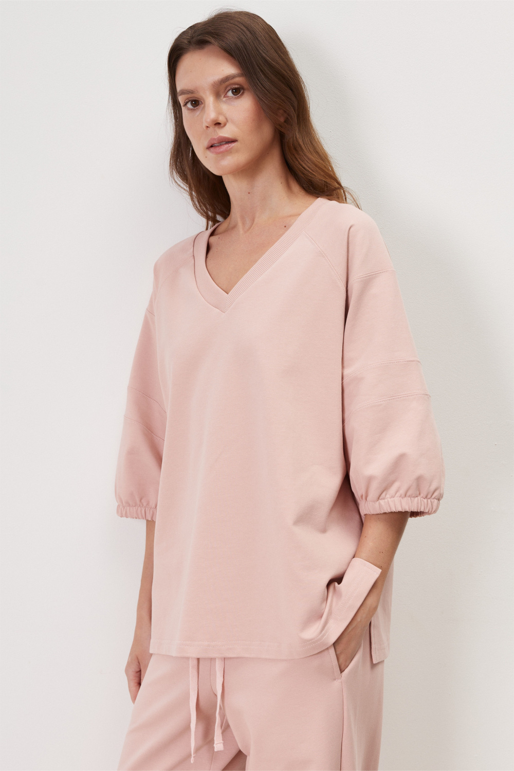 Модель удлиненная. Вырез горловины V-образный — придаёт изделию непринужденную элегантность, визуально вытягивая силуэт.