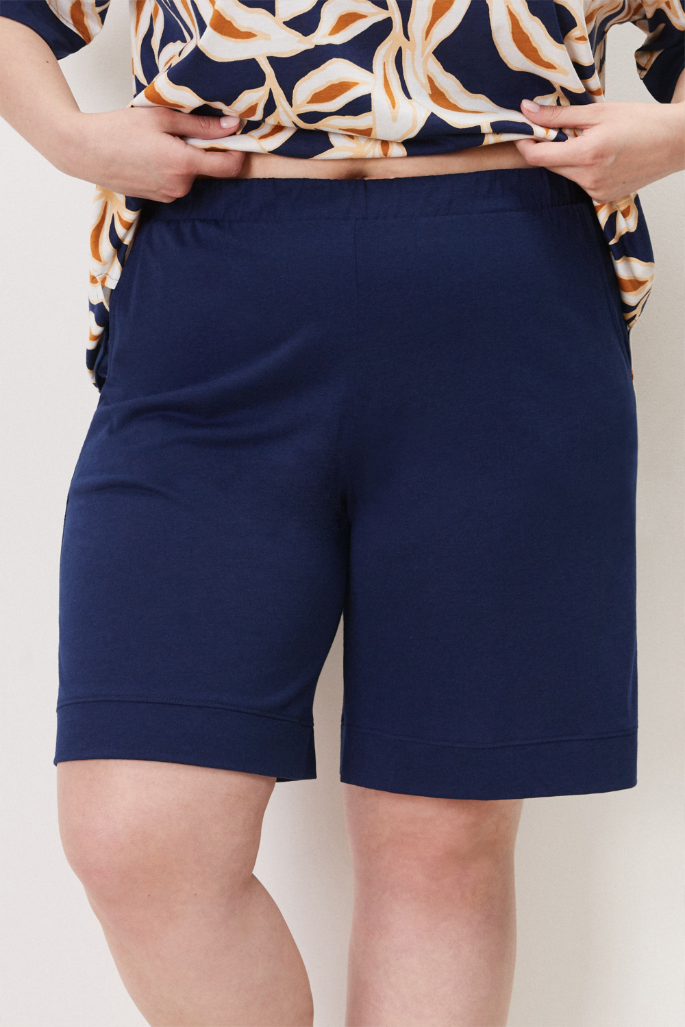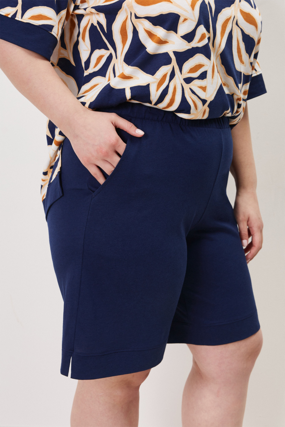 Шорты женские, удлиненные. Пояс на широкой резинке. В боковых швах функциональные карманы.