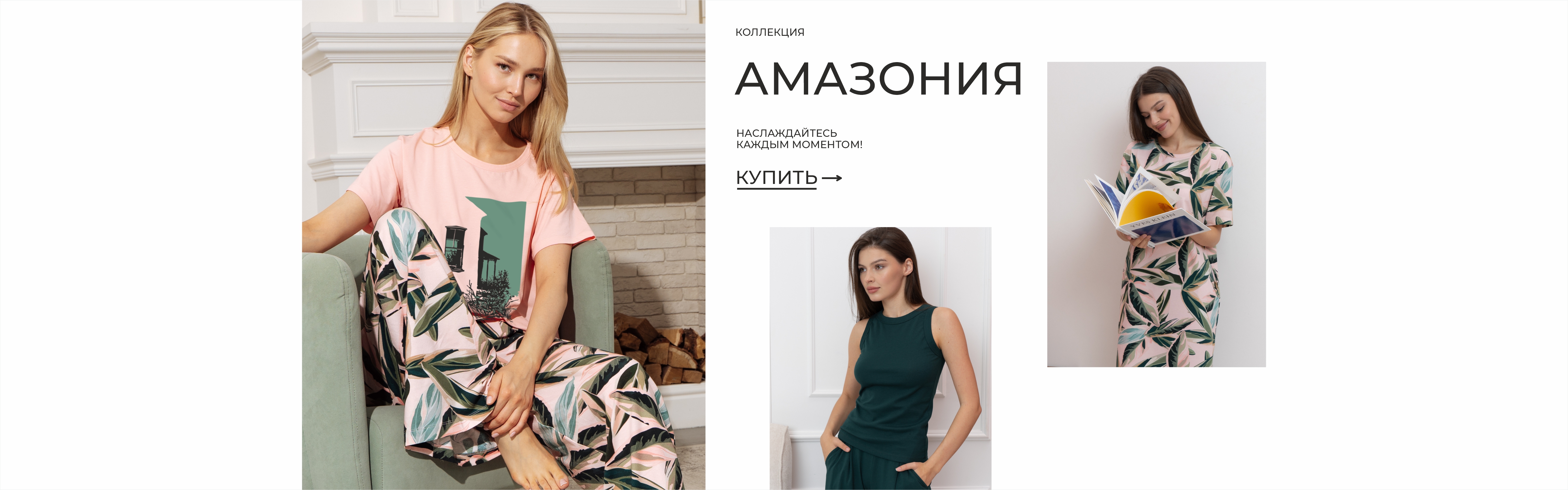 Коллекция Амазония из мягкого и тактильного хлопка. Добавление эластана гарантирует формоустойчивость моделей и долговечность при многократных стирках. Свободные формы дарят свободу движений, позволяя вам чувствовать себя раскованно и непринужденно.